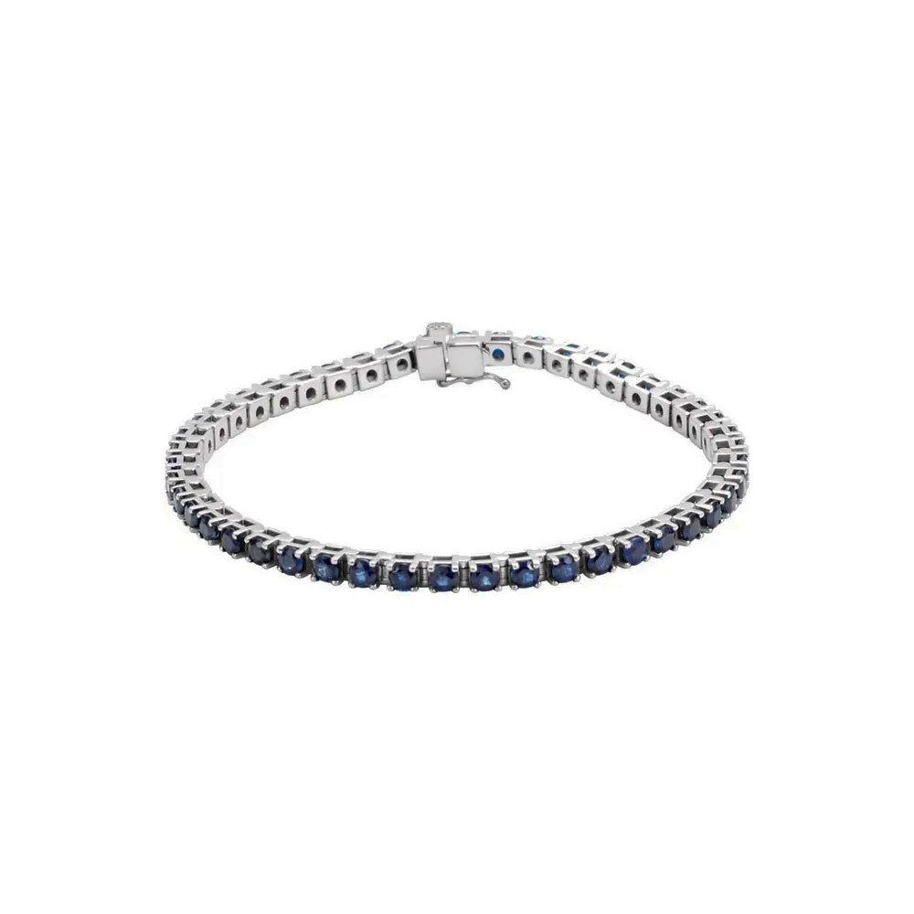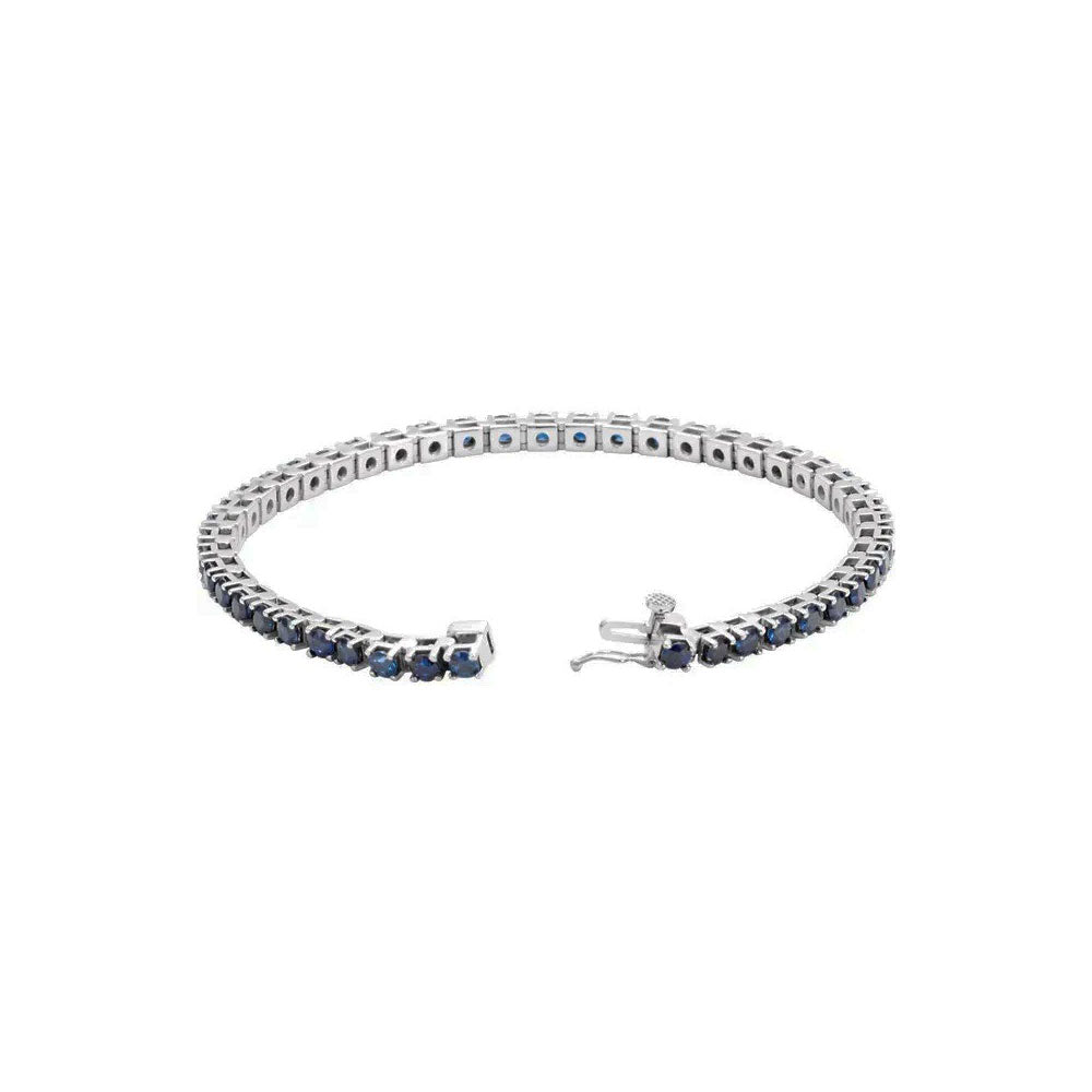 Natural Round Blue Sapphire Line Bracelet (14K).