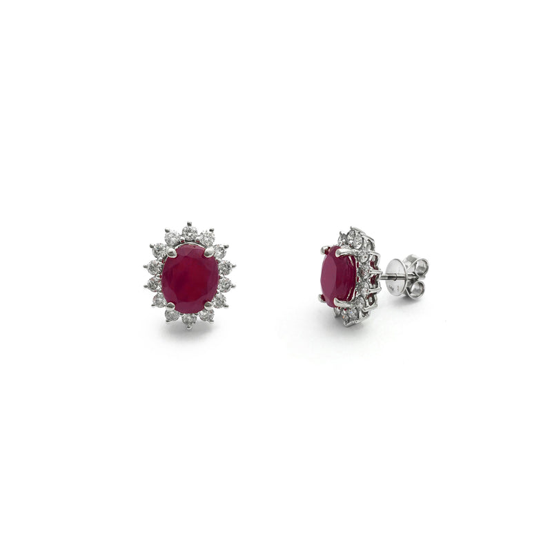 Oval Ruby Diamond Halo Stud Earrings (14K)