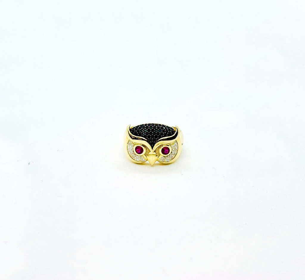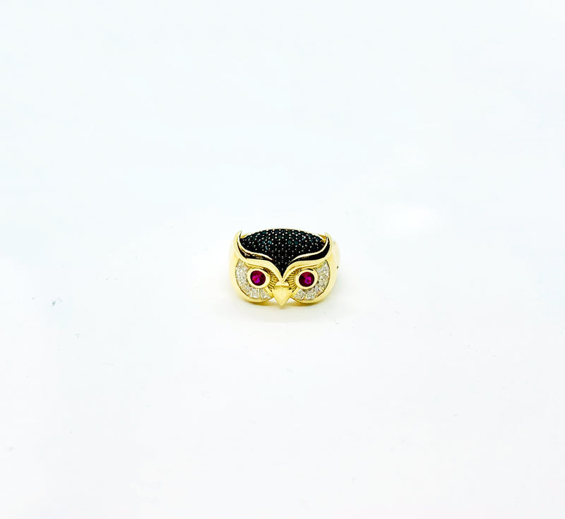 This is a precious Owl Face Ring with cubic zirconia stones.