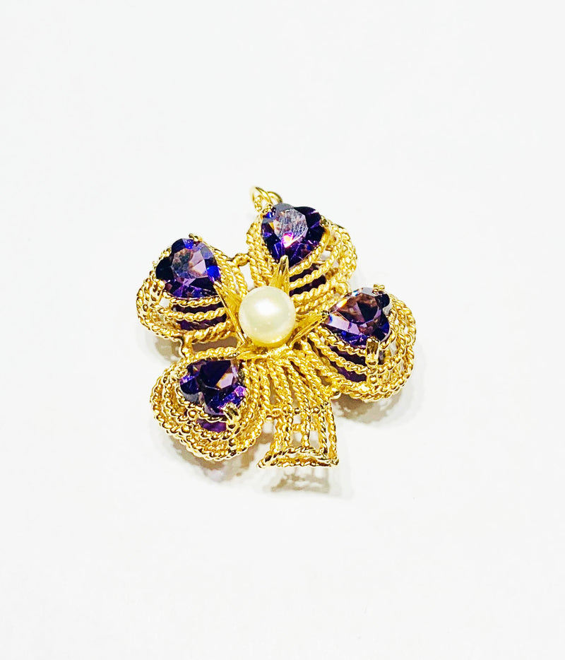 Amethyst Clover Heart Pendant (14K)