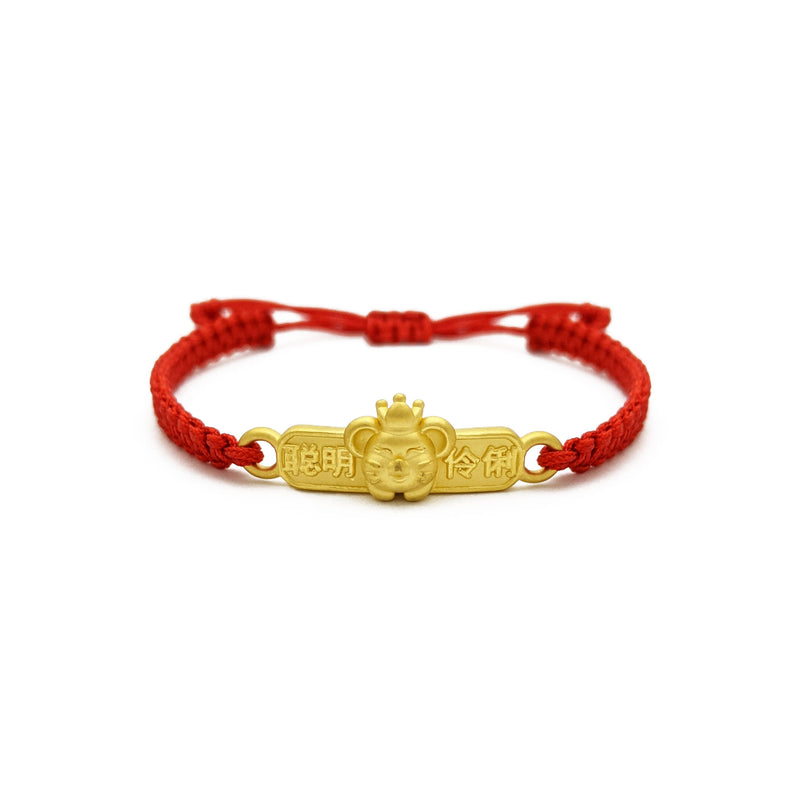 Regal Rat Bar Chinese Zodiac Red String Bracelet (24K)