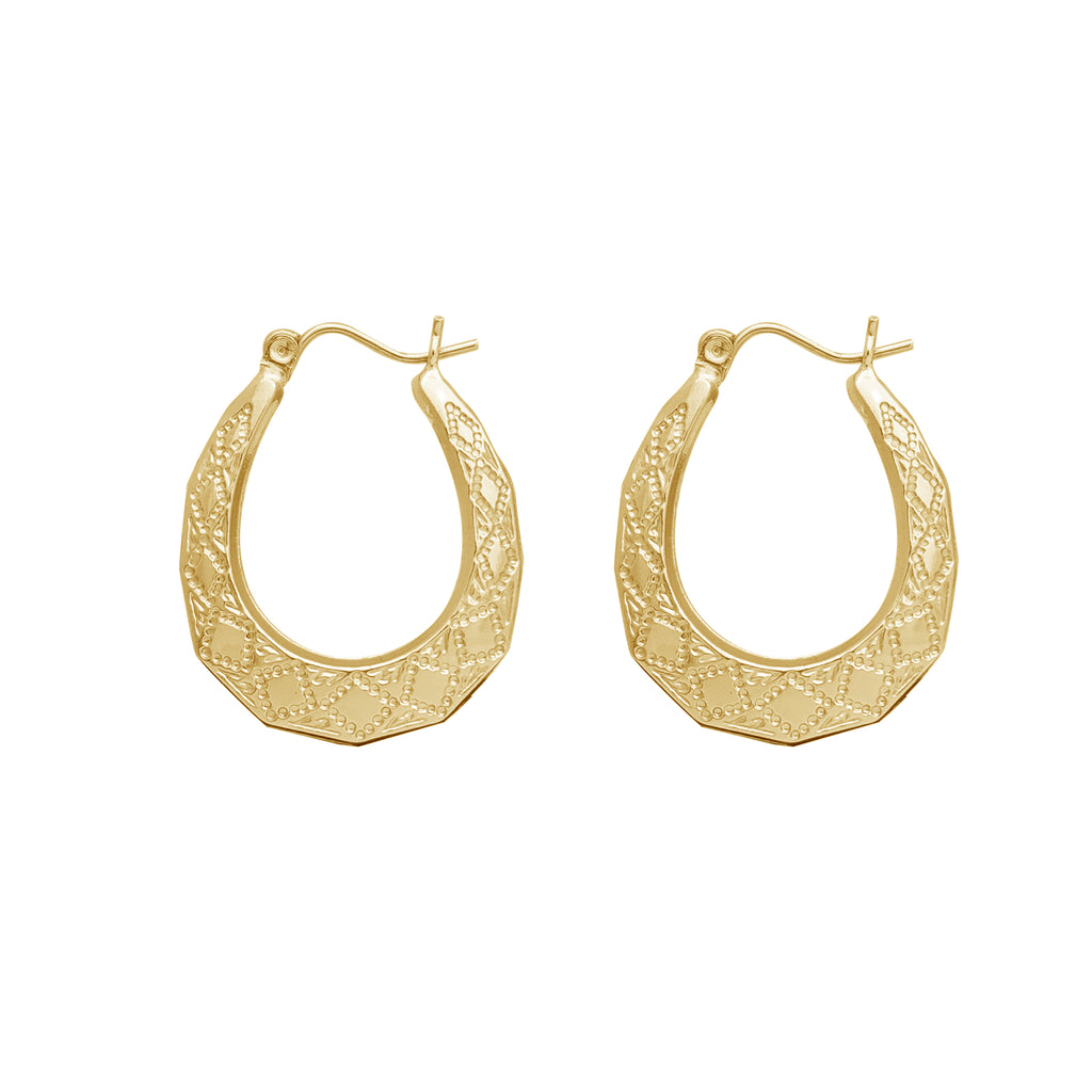 Rhombus Texture Oval Hoops Earrings (10K)
