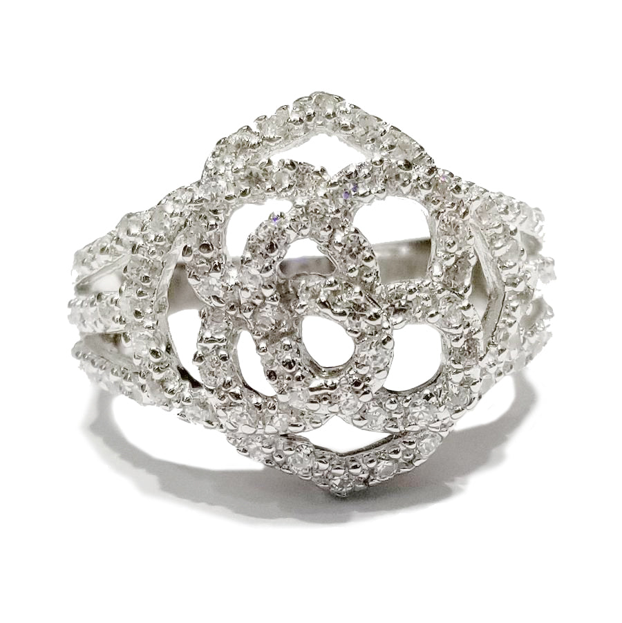Large Rose Outline CZ Ring (Sterling Silver)