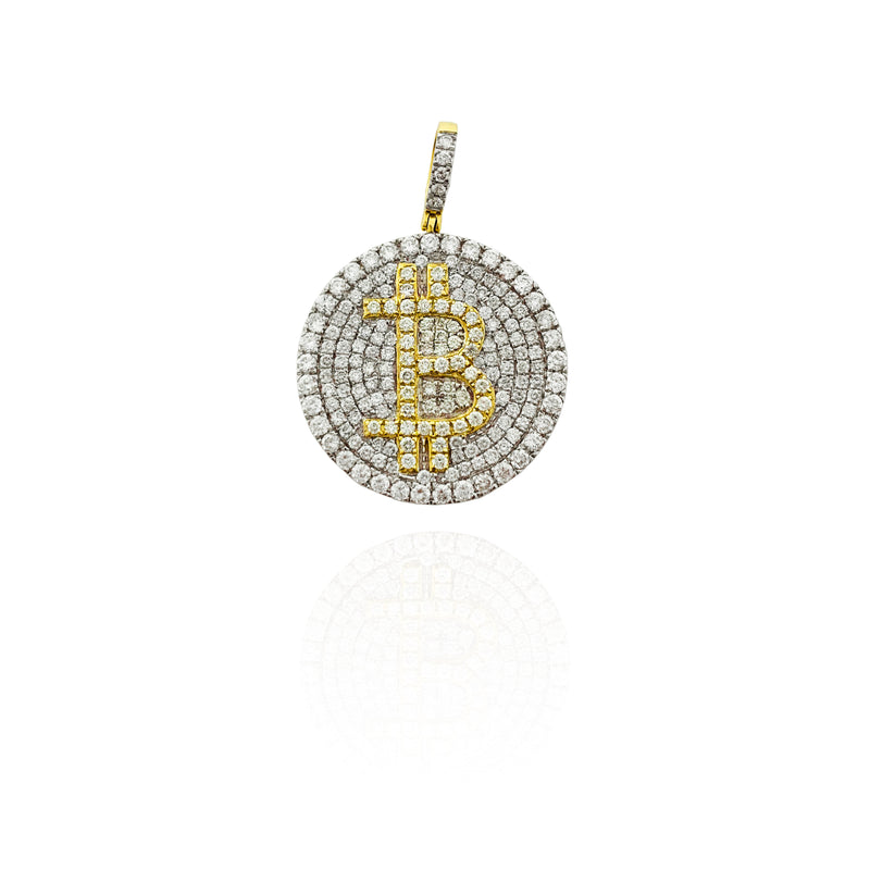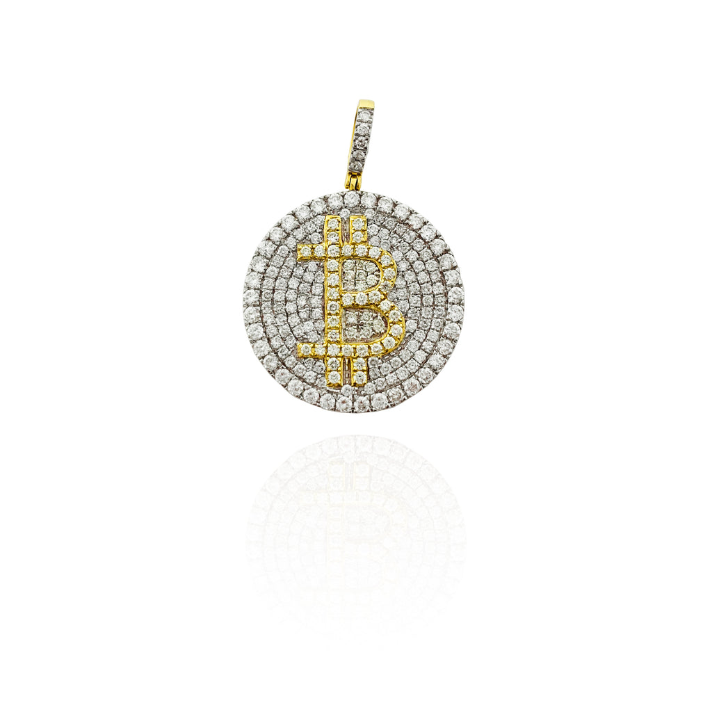 Two-Tone Iced-Out Bitcoin Diamond Pendant (14K)