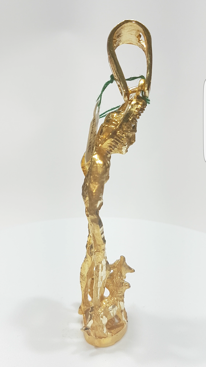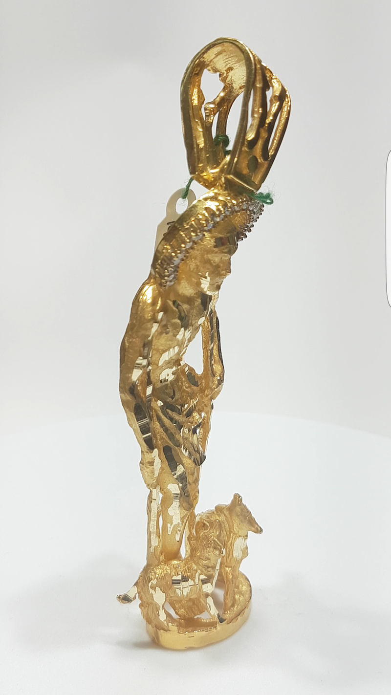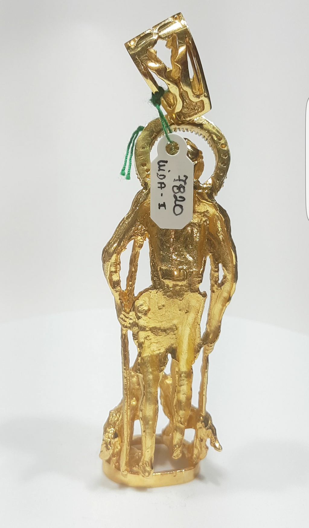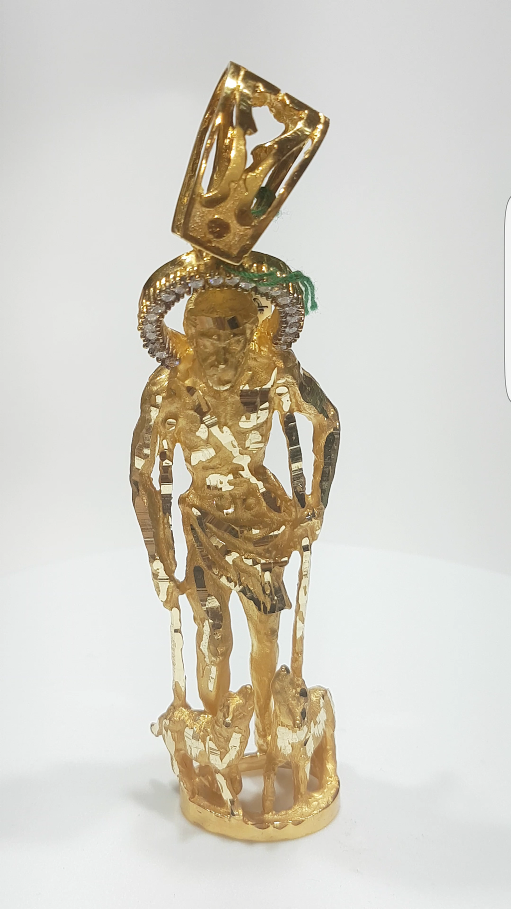 This pendant features a full-bodied Saint Lazarus and his companion dogs in all their 3D glory.