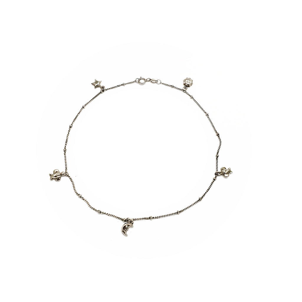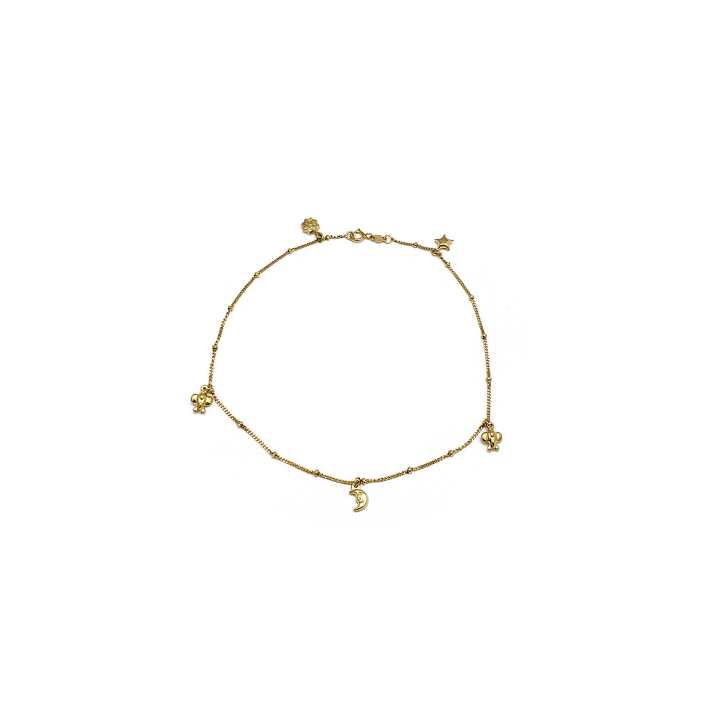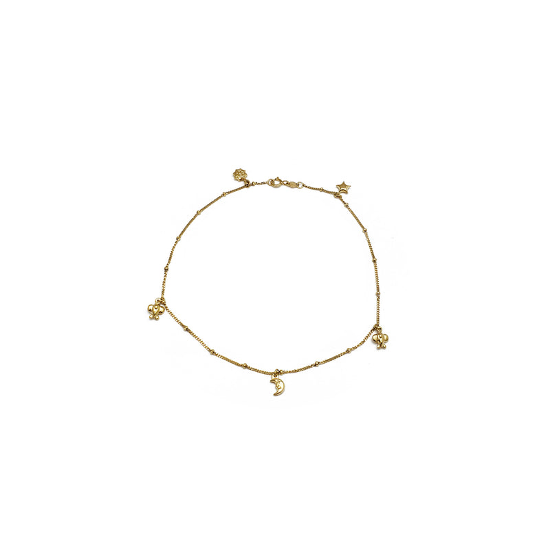 Sun Moon Charms Anklet Bracelet (14K).