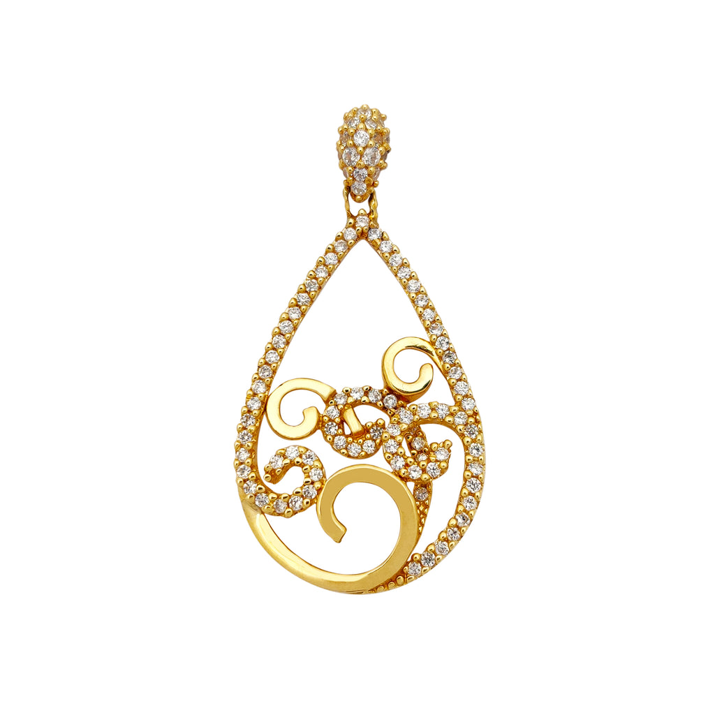 Fancy Stone Swirl Teardrop Pendant (14K)
