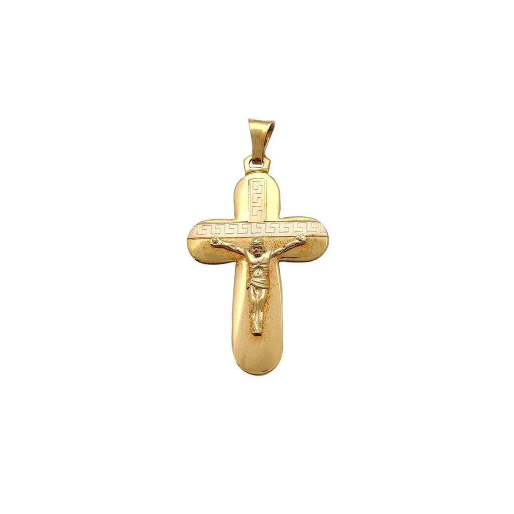 Tri-Tone Greek-Key Crucifix Pendant (14K)