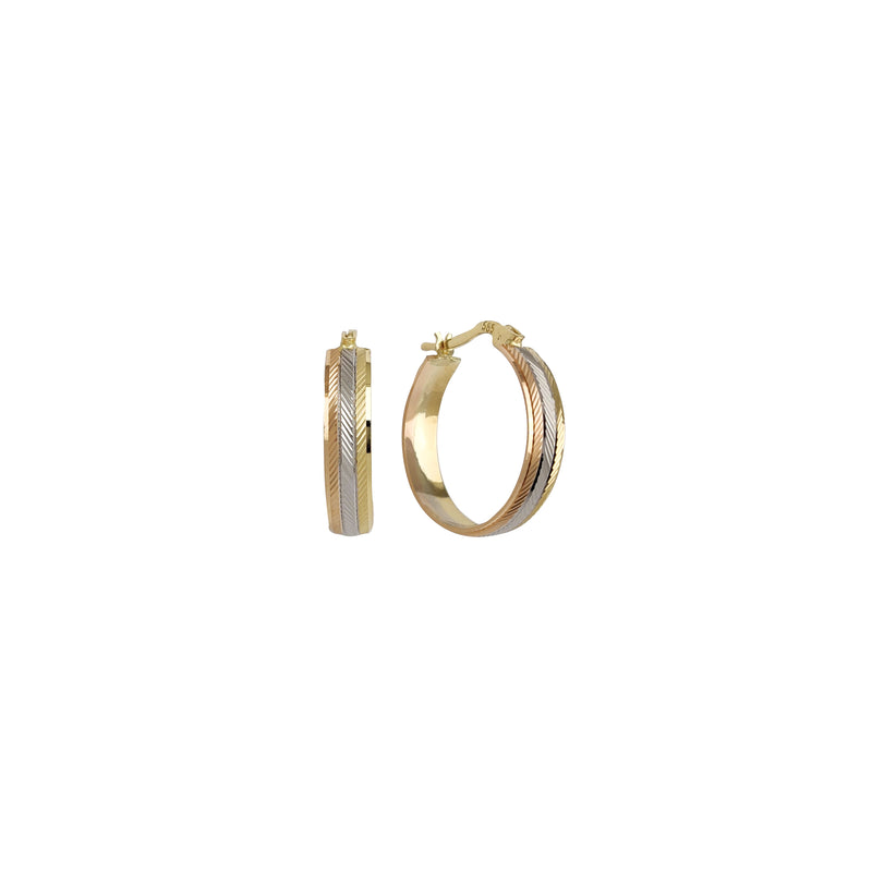 Tricolor Straight-Line Diamond Cut Hoop Earrings (14K)
