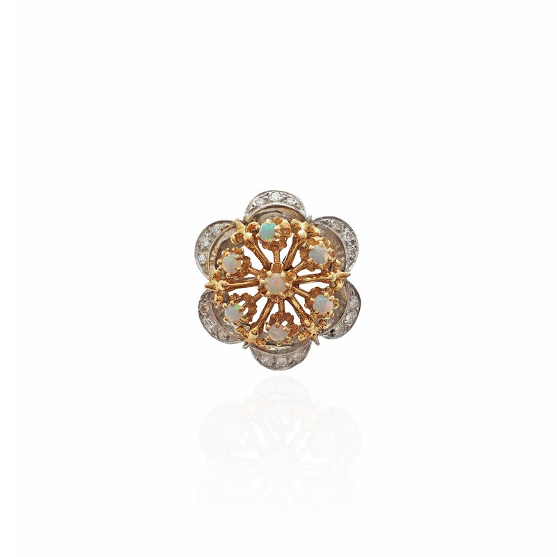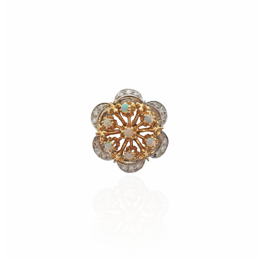 Diamond & Opal Blooming Lily Cocktail Ring (14K)