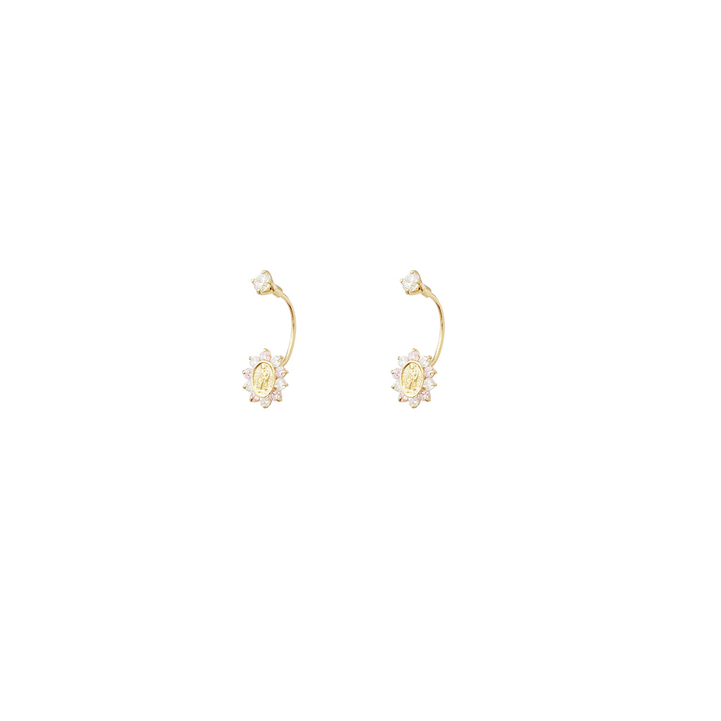 Virgin Mary Curve Hang CZ Earrings (14K)