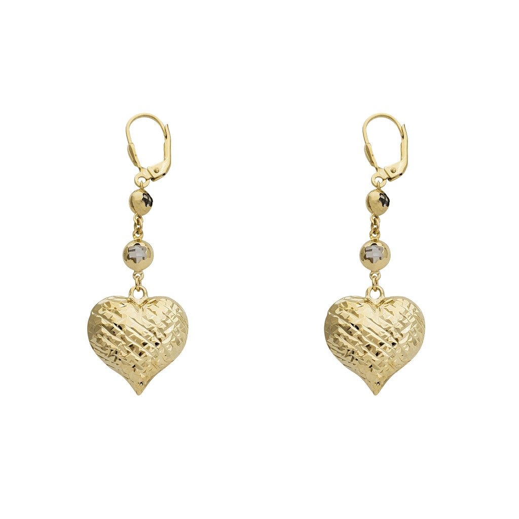 Zirconia Faceted Puffy Heart Hanging Earrings (14K)