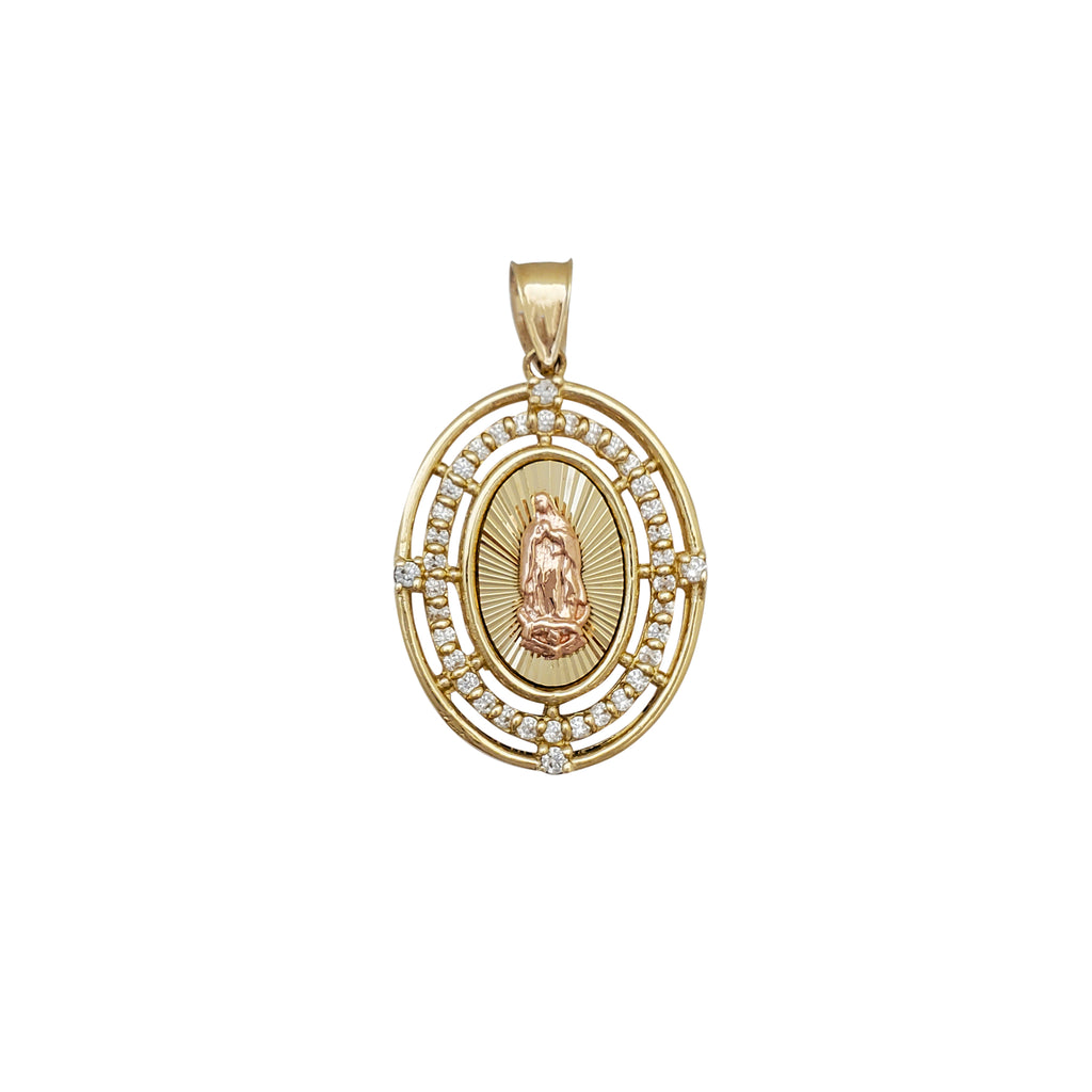 Zirconia Oval Halo Virgin Mary Pendant (14K)